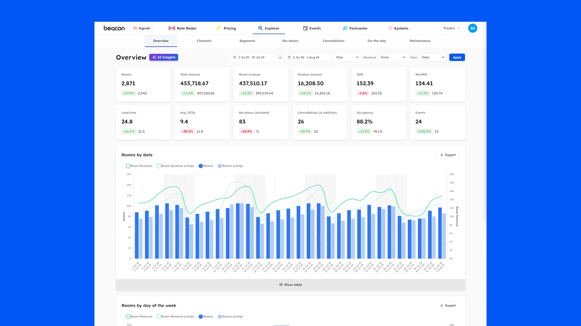 Beacon replaces your siloed hotel systems and time-consuming workflows, turning scattered data into clear answers.
